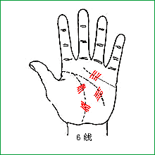 在2线和1线上出现6线时,也要结合各线的部位分析。6线细、短、浅时,病理意义不大,深、长(超过1cm)时有临床价值。
